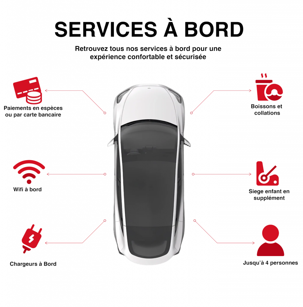 Nous nous distinguons par nos transferts confortables et prenimum vers toutes vos destinations, garantissant une expérience de voyage fluide, sécurisée et agréable.
